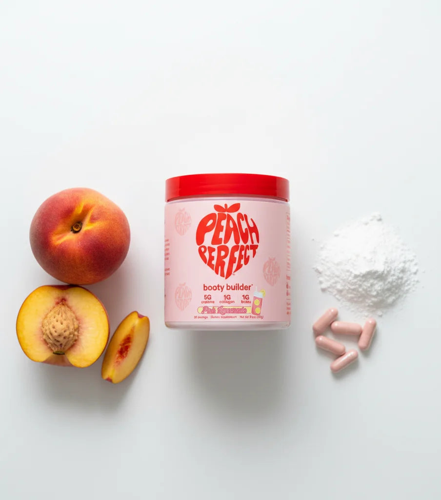 Peach Perfect Booty Builder usa creatina, colágeno y BCAAs para una activación profunda y un crecimiento muscular óptimo. ¡Sentirás la diferencia y verás resultados increíbles más rápido que nunca!